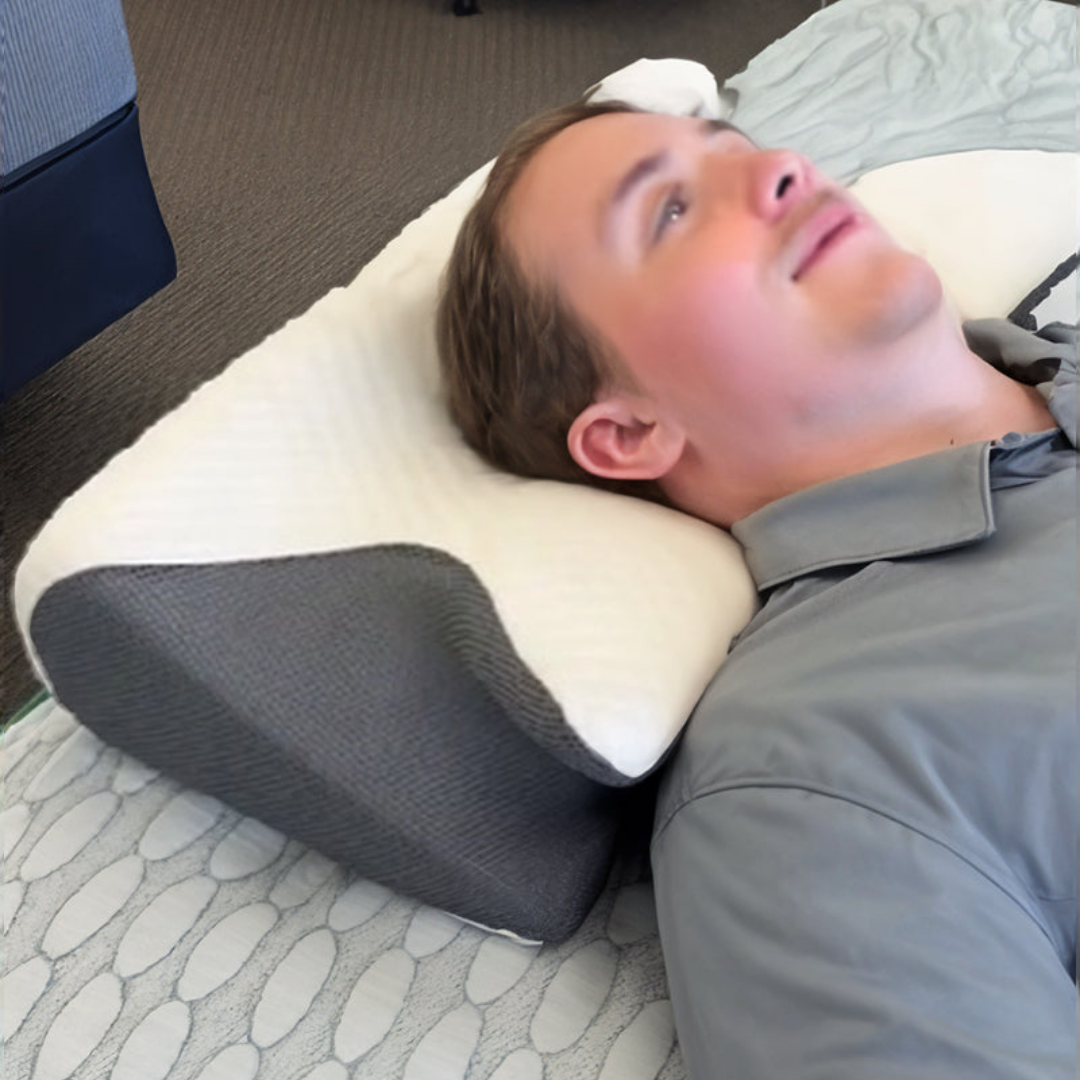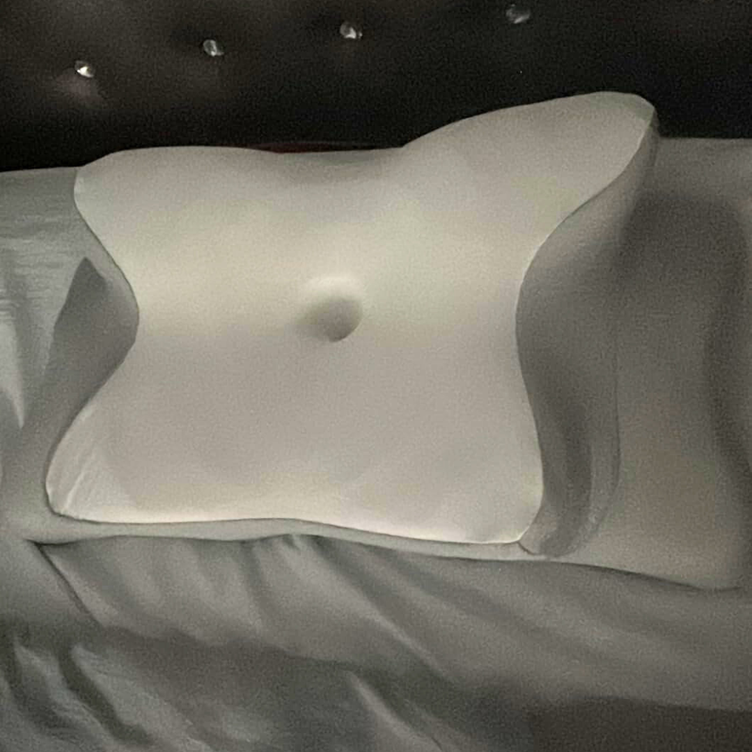 The butterfly contour maintains natural cervical alignment—keeping airways open all night. Regular pillows tilt the head wrong, collapsing the airway and causing snoring.