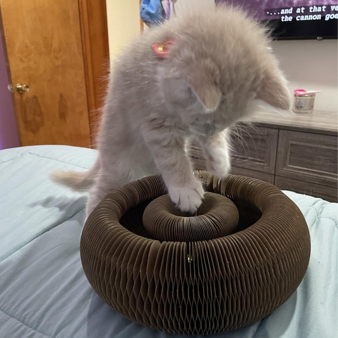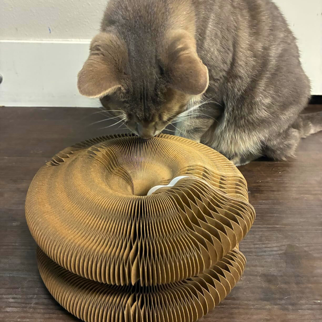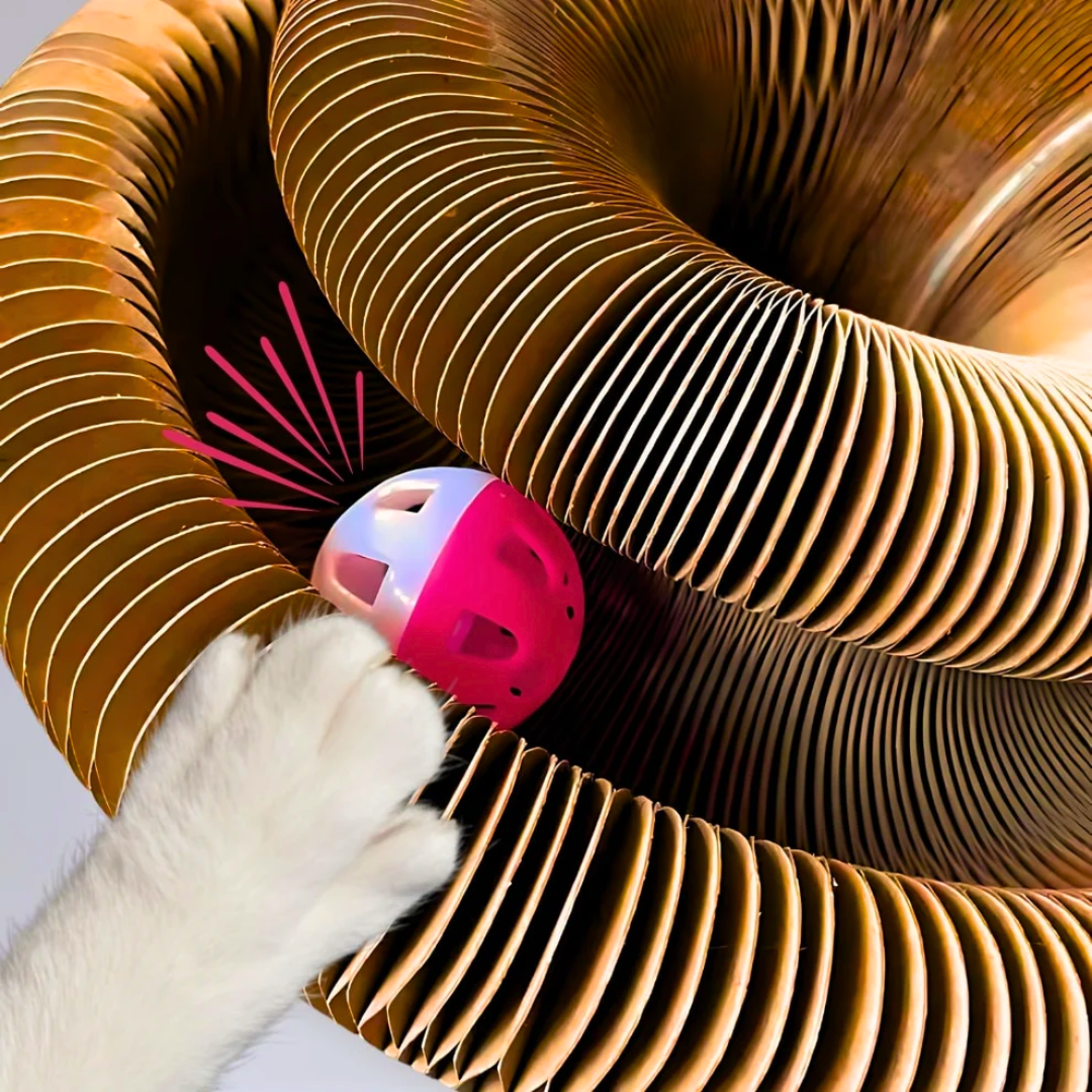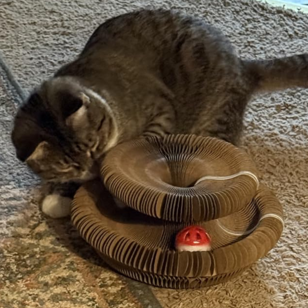 Pet-Parents love the all-in-one design. A scratcher, ball track, shape-shifter and even a cozy bed.
