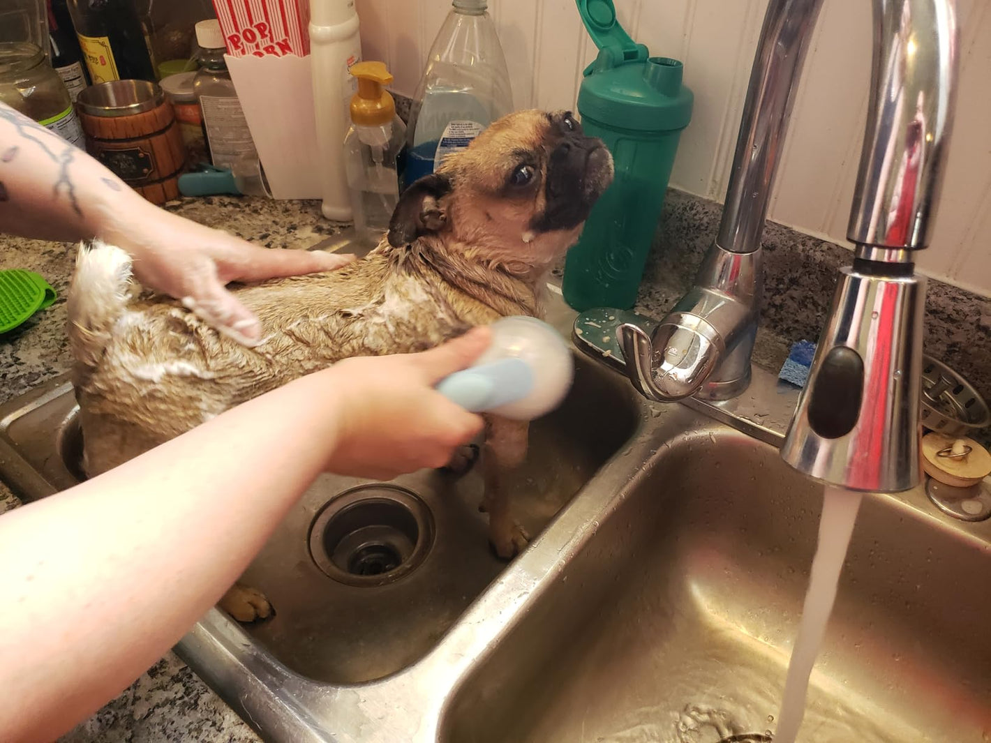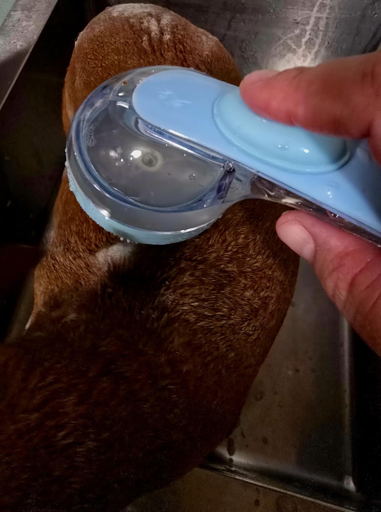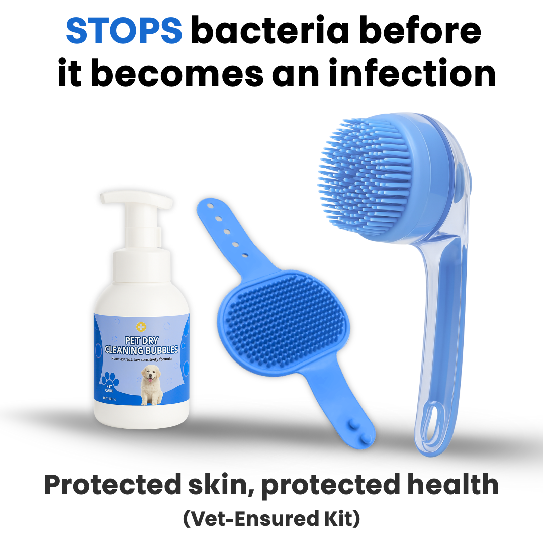Regular baths only wash the fur — leaving harmful bacteria trapped on the skin, where your fingertips and shampoo can never reach. This bacteria thrives in warm, humid pockets: armpits, belly folds, paw pads, and deep in the undercoat.