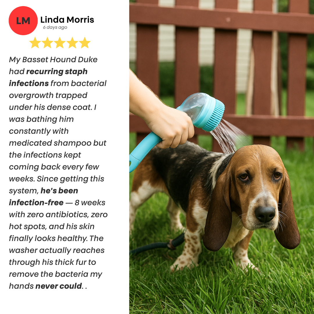 Worsened Allergies — Bacterial overgrowth triggers constant flare-ups, obsessive scratching, and self-inflicted wounds. Even medicated shampoos fail if bacteria isn't mechanically removed.